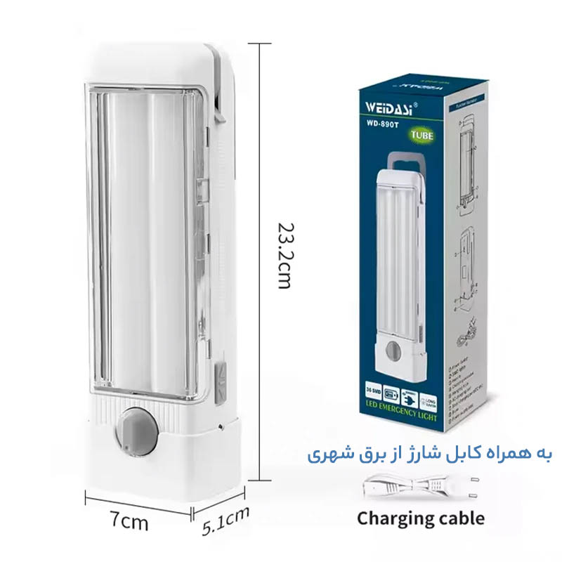 این چراغ در صورتی که به برق متصل است شارژ و با قطع برق به صورت خودکار روشن میشود.