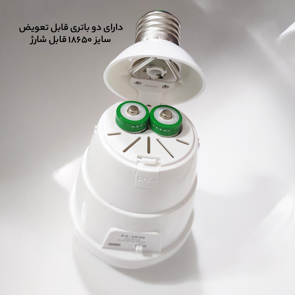 با اتصال این لامپ به سر پیچ تا زمانی که برق هست و چراغ را روشن کرده اید باتری ها شارژ می شود. زمانی که برق رفت به لامپ صورت خودکار روشن شده از باتری تغذیه می کند.